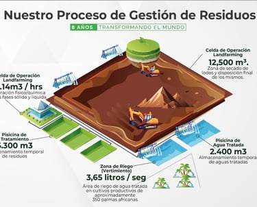 Almacenamiento y Tratamiento de Líquidos: Disponemos de 5 piscinas especializadas para la recepción y tratamiento de aguas residuales y lodos.